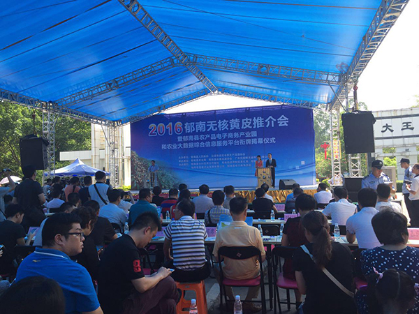 7月29日,由郁南县人民政府、云浮市名优水果生产流通协会主办的2016郁南无核黄皮推介会暨郁南县农产品电子商务产业园和农业大数据综合信息服务平台衔牌揭牌仪式在云浮市郁南县县城大王山国家森林公园广场隆重举行。云浮市副市长金圣宏、省农科院副院长李康活、市政协副主席阙妙丽和郁南县委书记廖鹏洲、我会农村电商部主任周建平,省农科院等省、市有关部门,周边县(市、区)农业部门及该县超市、电商企业、农业龙头企业、农民专业合作社、流通大户、家庭农场代表,淘宝、京东商城、阿里巴巴、顺丰优选、北京网库等大型电商企业负责人等近500余人参加推介会。